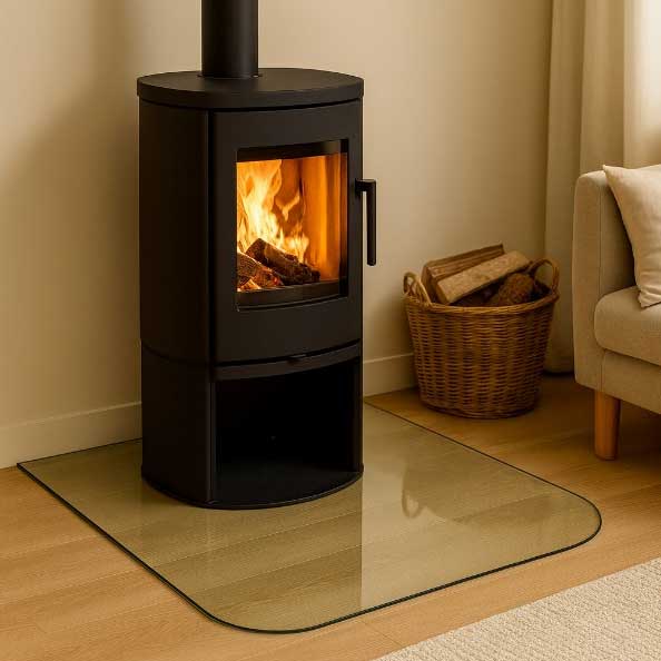 Vidrio securit de protección para el suelo delante de una chimenea o bajo una estufa de leña.